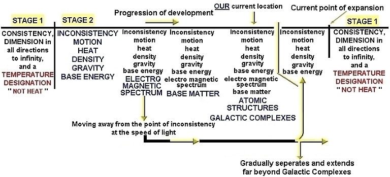 The UNIVERSE is comprised of GRAVITY in OSCILLATING DENSITIES // U = G O D I could have used other words, but the acronym (U = G O D) was just too compelling - from free form gravity to energy to matter, and back again. Like a pendulum. STAGE ONE COMPONENTS 1. DIMENSION - To infinity in all directions. 2. TEMPERATURE - designation - not HEAT - of a CONSISTENT value at all points. (Point of mention: If you placed a thermometer in the universe during STAGE ONE, the reading would not change. To say - The reading on the thermometer would NOT RISE or FALL forever. There would have been a static reading because there was no HEAT to alter it.) DEVELOPMENT of THE POINT of INCONSISTENCY (NO BIG BANG - JUST A LITTLE "UMPH") STAGE TWO COMPONENTS 1. DIMENSION - To infinity in all directions. 2. TEMPERATURE - INCONSISTENT value. 3. DENSITY - " 4. MOTION - " 5. ENERGY- " 6. MATTER - " 7. GRAVITY - " POINT of INCONSISTENCY The development of a POINT OF INCONSISTENCY is the most difficult part of this theory to understand, and the crux of it as will. Something from nothing is difficult to explain, it took me more than 20 years to understand it myself. It is actually very simple when looking at the problem from the prospective of - (Could ALL POINTS in eternity remain CONSISTENT for an eternity?) The answer is NO! - (i.e., Here we are.) OUR FORMATION The structure of our formation begins at the POINT OF INCONSISTENCY and continues outward to as far as the electromagnetic spectrum has been able to expand at the speed of light to the present, and is spherical. It's matter also in a general spherical shape, but much smaller than the electromagnetic spectrums spherical shape. What we can perceive from our solar system is only a small portion extending for billions of light years from its center. Plus, because our formation exists, there could be an infinite number on other formations already in existence, or that will be, or just ours. It will be a long time before we know. THE PROCESS The structure of OUR FORMATION begins at the POINT OF INCONSISTENCY and continues outward to as far as light has been able to travel since the creation of electromagnetic spectrum. Its shape is spherical. During STAGE ONE, a POINT OF INCONSISTENCY changed the universe from having a CONSISTENT value to having an INCONSISTENT VALUE. This was the beginning of STAGE TWO. The point of inconsistency established motion, density, gravity, and heat. These properties created the stress which created an even greater inconsistency. As this process continued, enough FREE FROM GRAVITY was created to attract to itself with enough intensity to create the density necessary to form BASE ENERGY, then COMPLEX ENERGY, then BASE MATTER, and finally COMPLEX MATTER which is why gravity is a (3) dimensional attractive force at all indivisible points that exists. Complex matter is the end game for the building blocks of the universe. BASE MATTER forms at a single point, and is spherical due to the consistency of the environment in which it exists. BASE MATTER has maximum density, and like all things begins to break down even as it is created. The environment that allows the creation of BASE MATTER, prevents the individual particles from combining. Otherwise, all matter would be one big mass. BASE MATTER is the smallest and densest particle possible, and is SPHERICAL. As the original gravitational formation grew, it became denser and denser at its core because gravity only attracts. Eventually the core became dense enough to create base energy, then complex energy, then base matter, and finally complex matter. As everything breaks down, the process is reversed - complex matter, to base matter, to complex energy, to base energy, finally back to free form gravity, then back again. This is why everything attracts to everything else in proportion to its 'quantity' of energy and matter 'density'. The smaller the object the less gravity has a influence, and the greater the electromagnetic and nuclear forces influence. Free form gravity cannot be separated from the energy or matter of which it forms. Energy and matter share their free form gravity if close. Free form gravity will attract to itself forming a spherical shape if left to itself like in our formation between galaxy clusters. Gravity does not have a speed, it has intensity. You can't separate gravity from energy or matter because they are made of gravity. Imagine in the beginning gravity grew like a large ball because it only attracts, even to itself. The bigger the gravity ball gets, the denser it gets at the center as energy, matter and gravity forms. Free form gravity will be assimilated or shared with the energy or matter it comes in contact with. Think of our formation as a big ball of gravity with objects of varying densities scattered throughout it. LENSING The gravitational force of a star and the gravitational force of light attract each